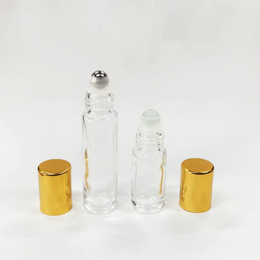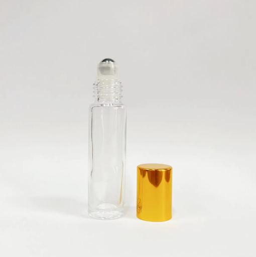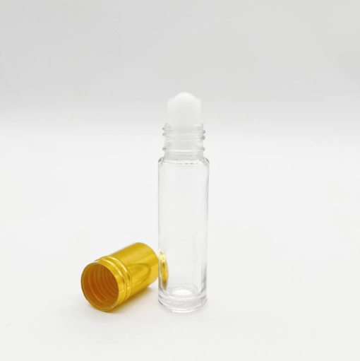 Luxury Attar Clear Glass Roll On Bottle With Roller Ball And Golden Cap