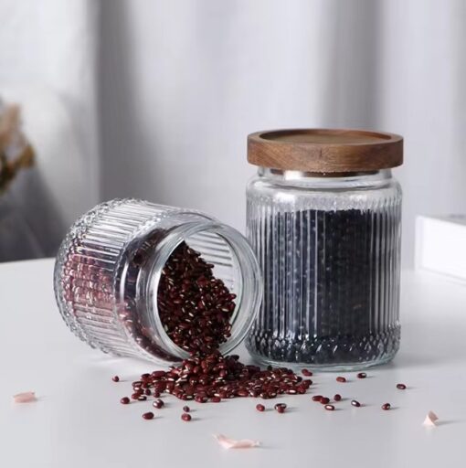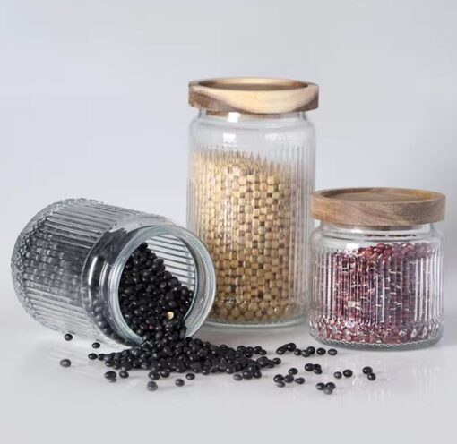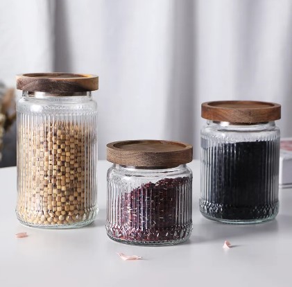 Round Airtight Coffee Tea And Spice Glass Jars With Bamboo Or Wood Lids