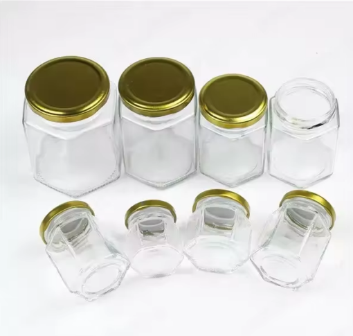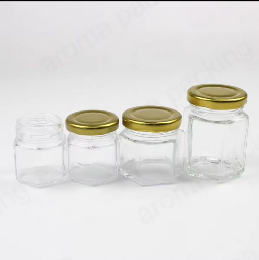 Wholesale Hexagonal Glass Jar With Golden Cap