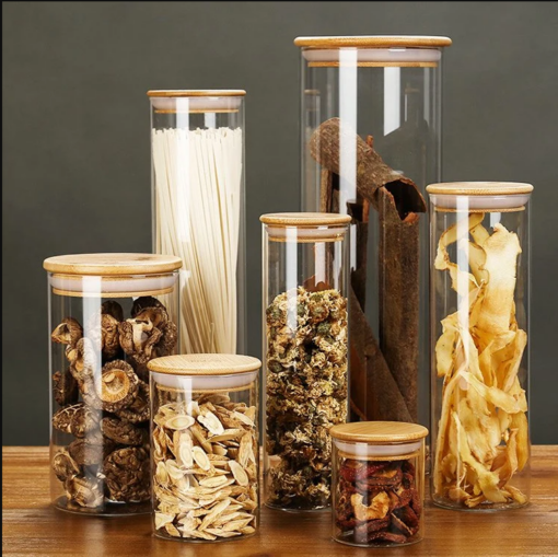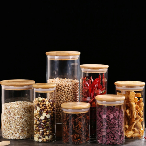 Wholesale Kitchen Container Glass Jar With Eco Friendly Bamboo Lid