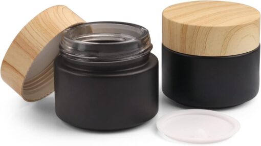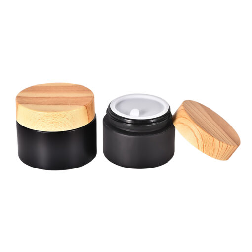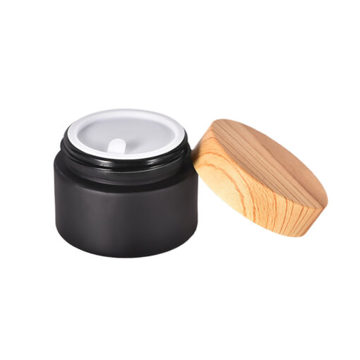 Wholesale Matte Black Face Cream Jar Containers With Wood Grain Lid