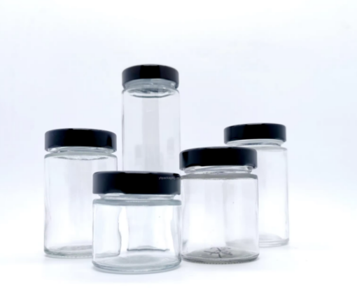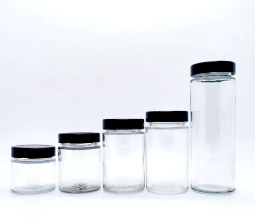 Wholesale Round Straight Glass Jar With Black Lid