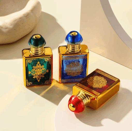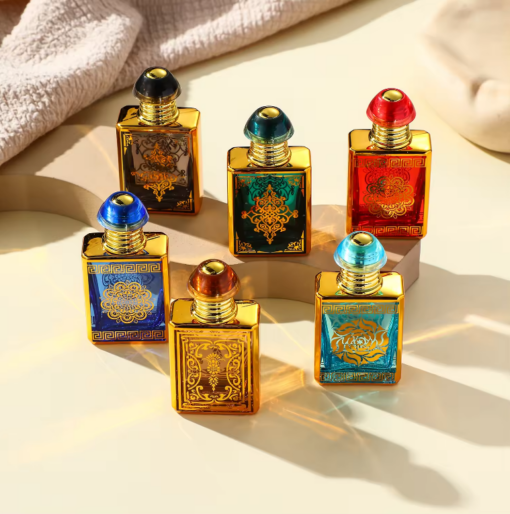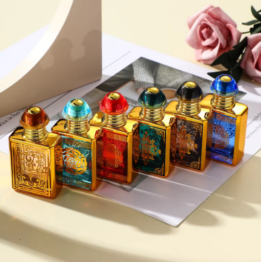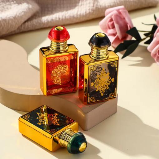 Wholesale Uv Electroplate Square Golden Roll On Glass Bottle With Unique Special Cap